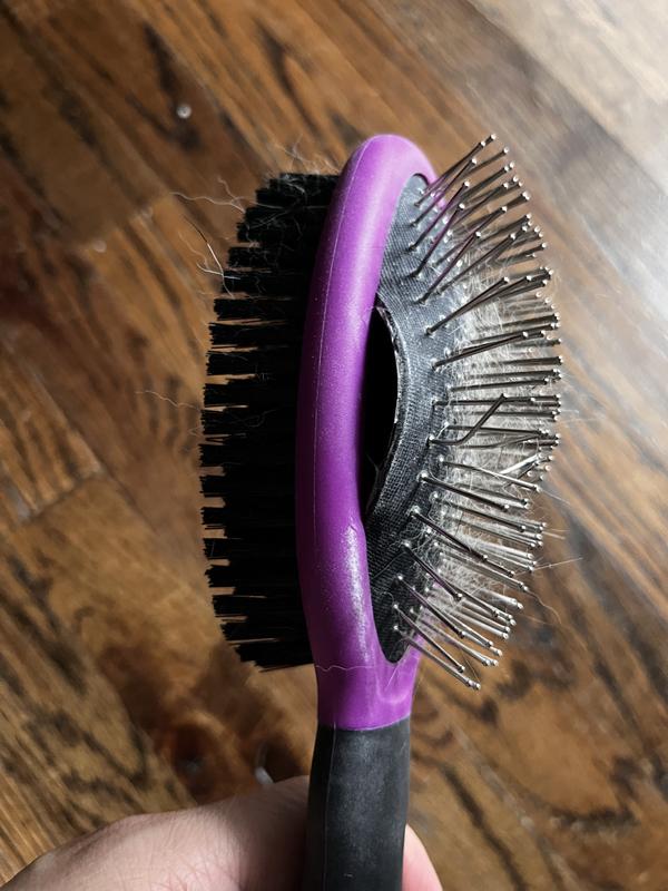 Double-sided brushes detangle, soften the coat and remove excess loose fur to help reduce shedding.