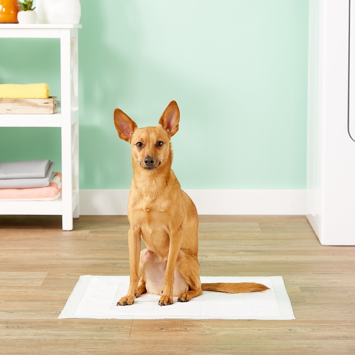 - Immediately after the dog eliminates on the pad, reward him with praise and a treat.