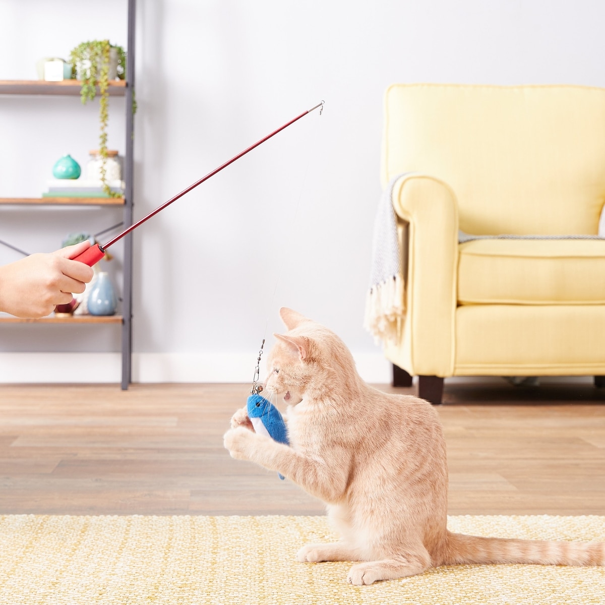 The toy definitely caught her attention however, the feather part separated from the connection the first few hours. I did not complain because, the fish was really good. Now, after a month? The connection to the pole slung out when tossing it around. I would gave it one star because, the fish was her thing. Now that the attachment holder separated from the pole. trash can