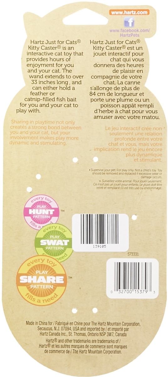 Hartz Just for Cats Kitty Caster Cat Wand Toy with Catnip, Color Varies