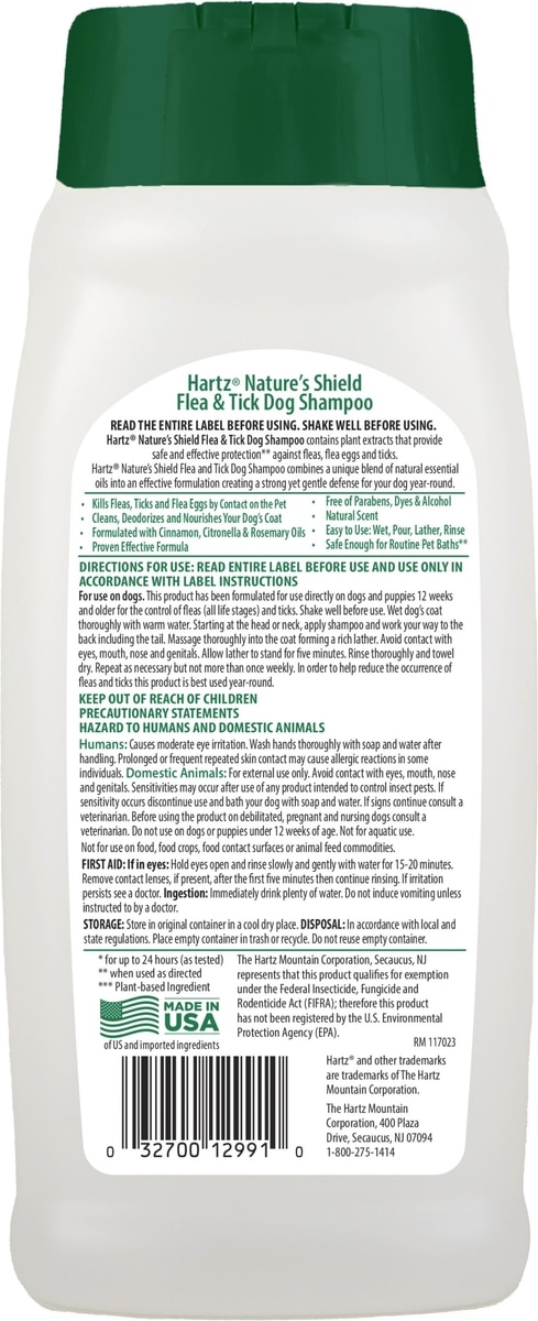 Hartz Nature's Shield Natural Flea & Tick Dog Shampoo, 14-fl oz bottle