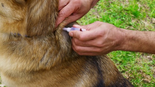 Step 3: Position the dispensing tip on your dog’s back between the shoulder blades.
