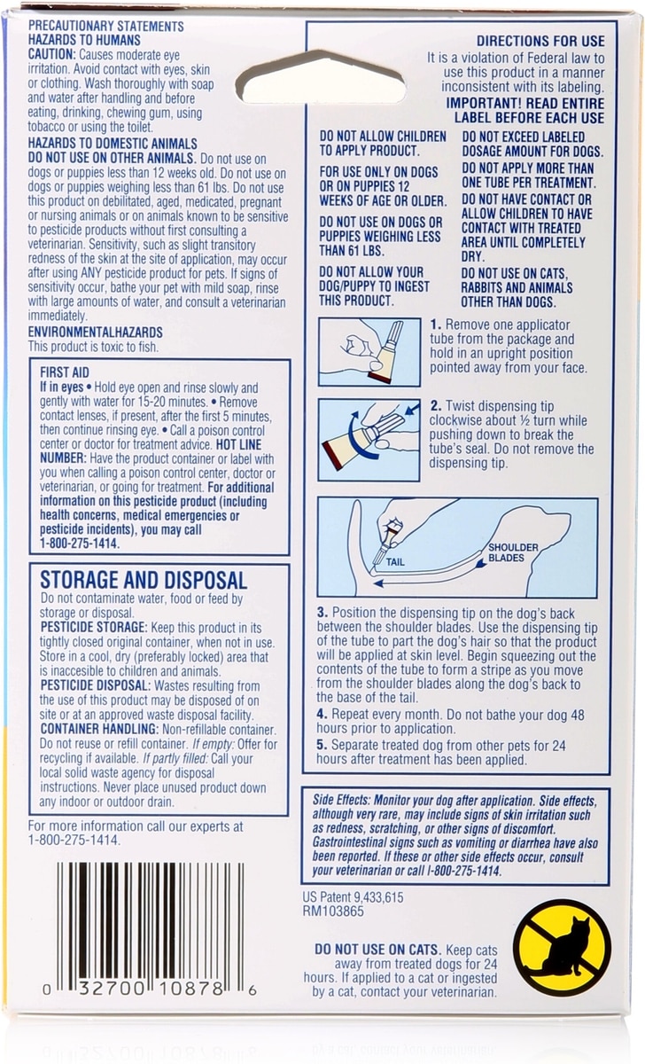 Hartz UltraGuard topical formulations utilize your dog’s natural oil composition to spread their active ingredients across the skin. Once applied, the monthly formula moves across the skin and hair for full body protection.