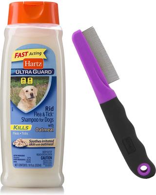 Bundle: Hartz UltraGuard Rid Flea & Tick Oatmeal Dog Shampoo + Groomer's Best Flea Comb
