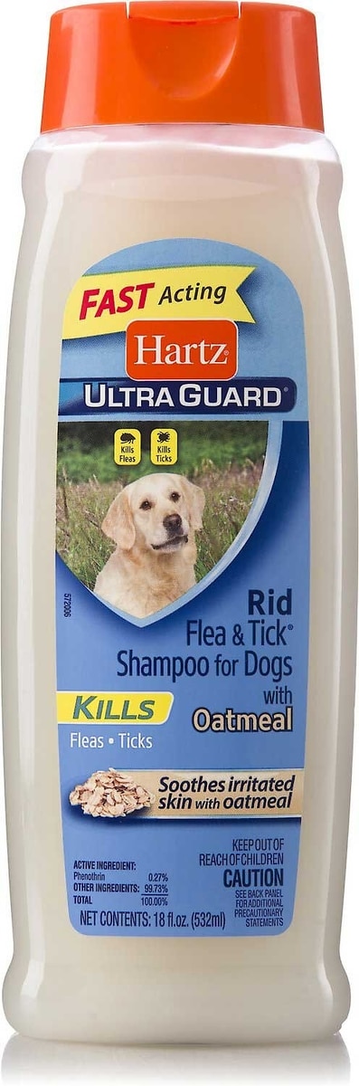 - Hartz UltraGuard Rid Flea & Tick Oatmeal Dog Shampoo provides your dog with immediate relief from fleas and ticks. The cleansing formula is specially designed to kill fleas and ticks. This unique shampoo is enriched with oatmeal to help provide soothing relief from bug bites which can cause itchy or irritated skin. This is made for dogs or puppies 6 months of age and older.