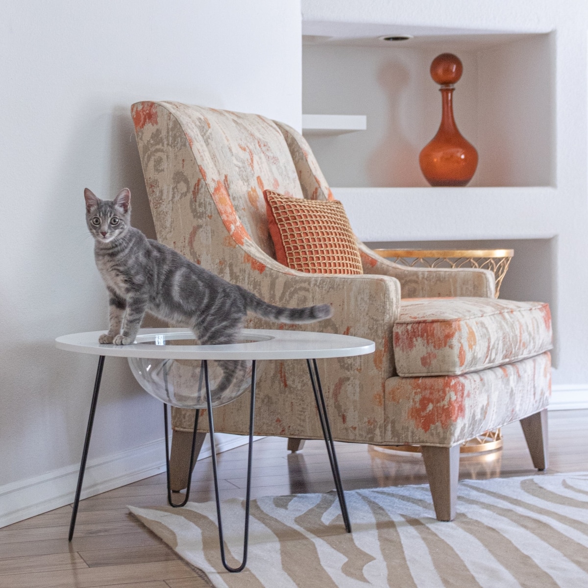 Hauspanther NestEgg Raised Cat Bed & Side Table, White
