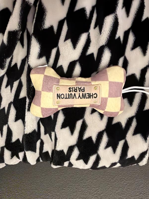 Haute Diggity Dog Chewy Vuiton Bone Squeaky Plush Dog Toy, Black Checker, X-Large