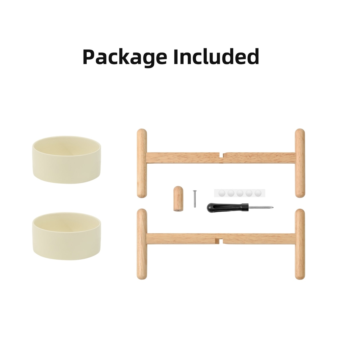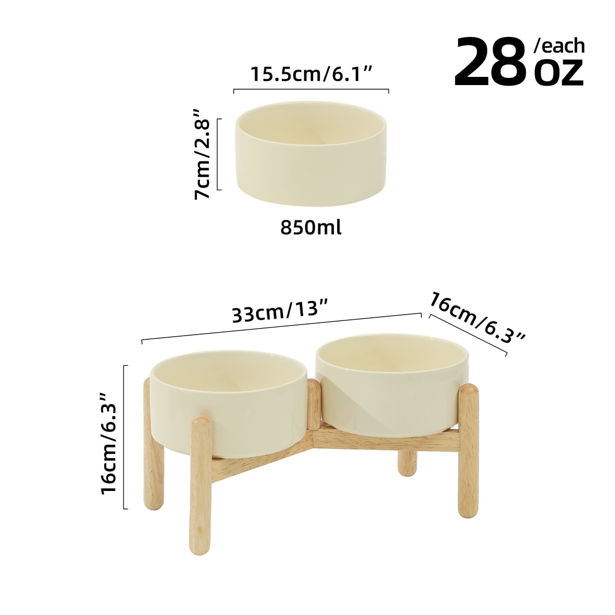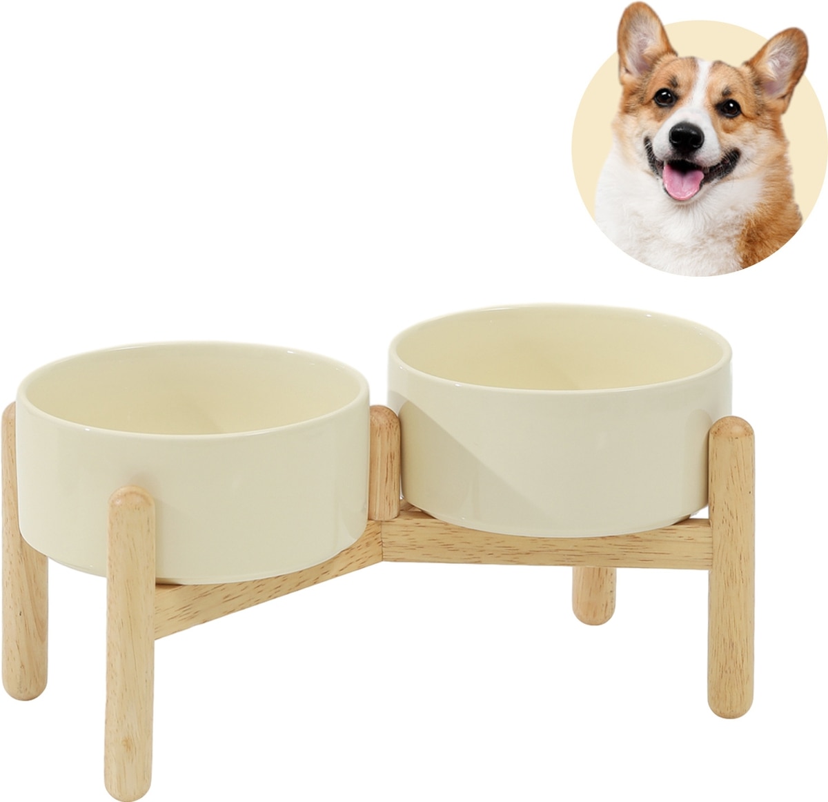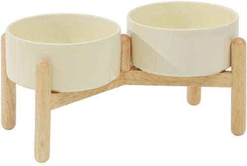 Havniva Ceramic 6-in Raised Dog Double Bowl with Stand, Beige