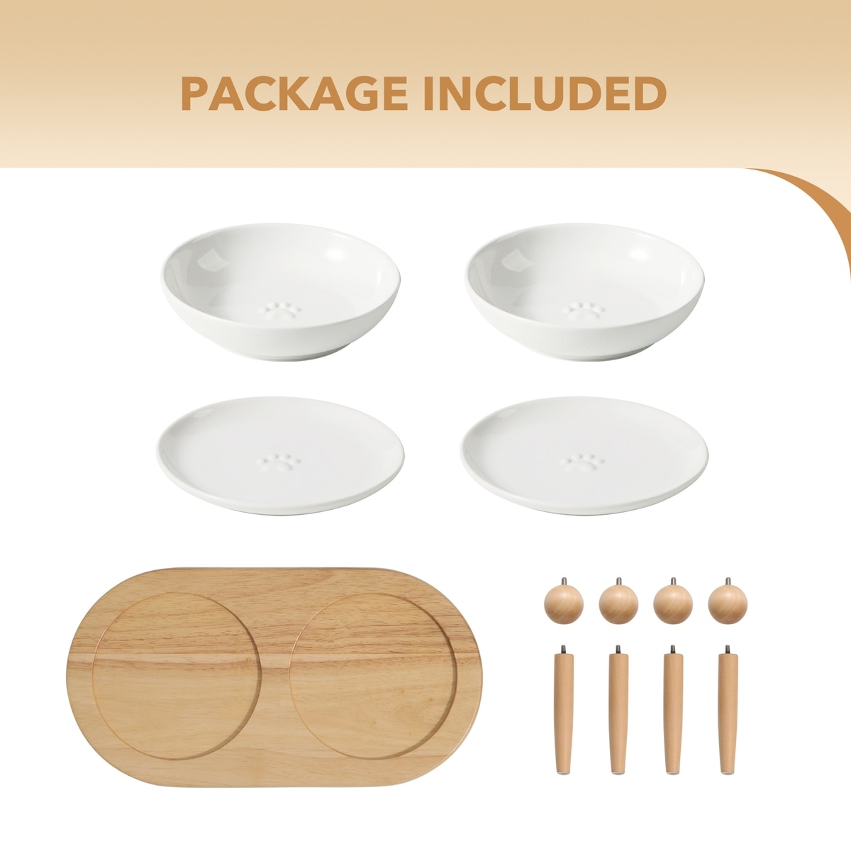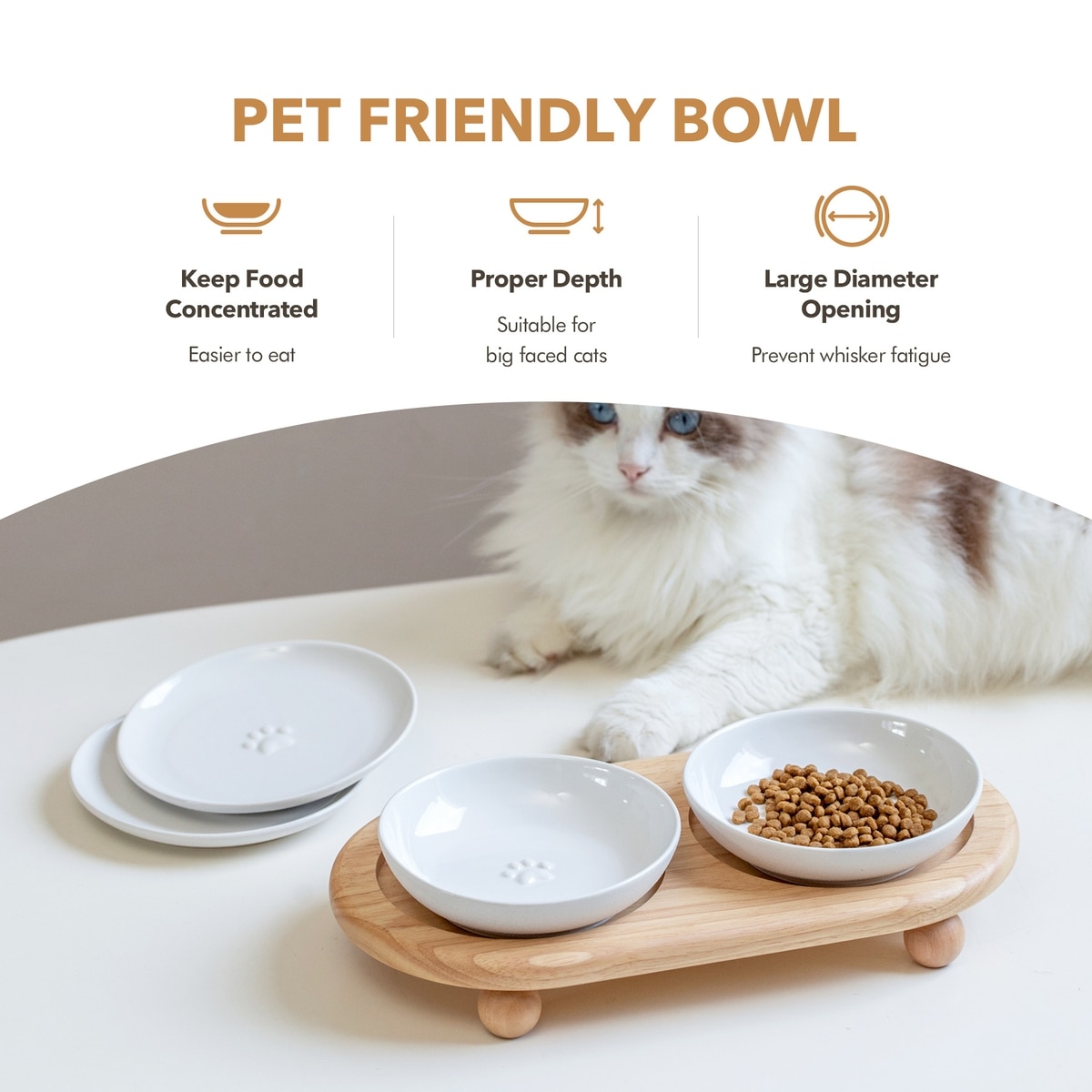 Havniva Ceramic Adjustable Elevated Cat Bowl with 2 Style Stand, 5.6-in, White