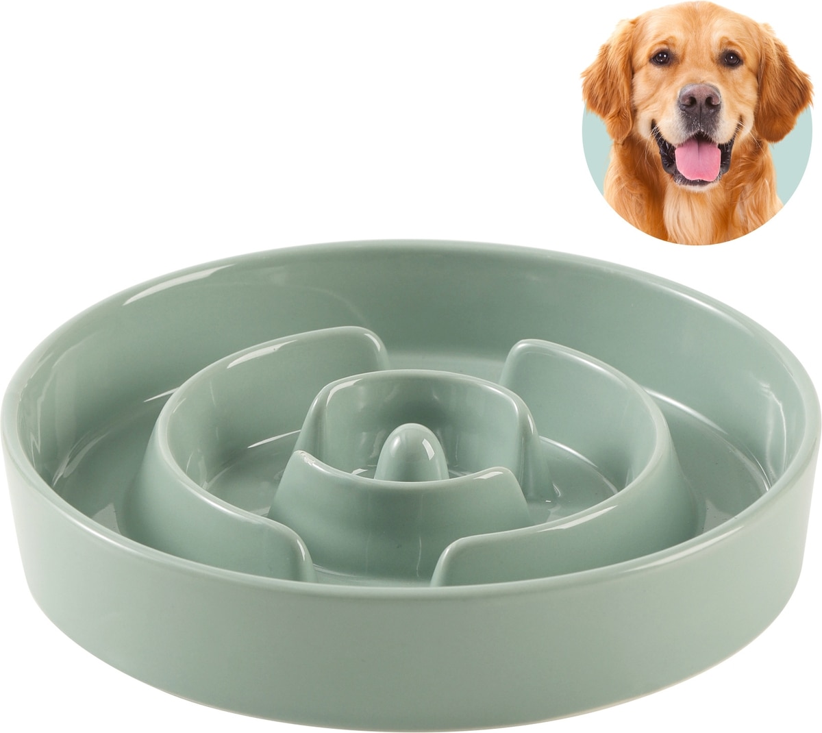 Havniva Ceramic Anti-Gulping Slow Feeder Dog Bowl, Light Green, 9.5-in