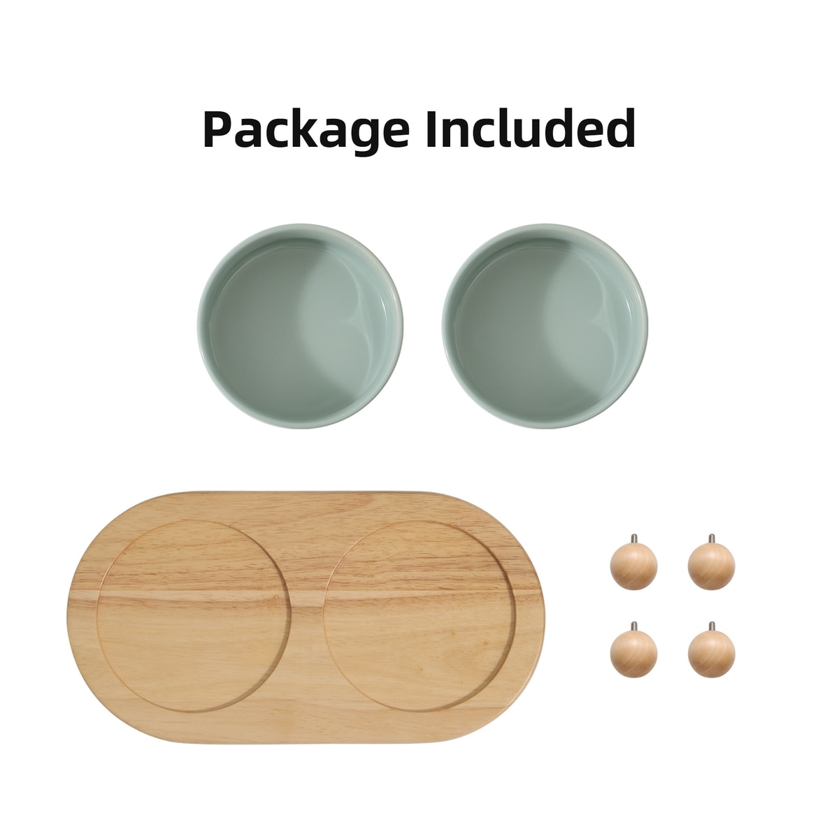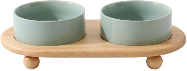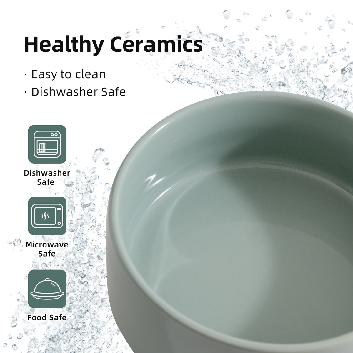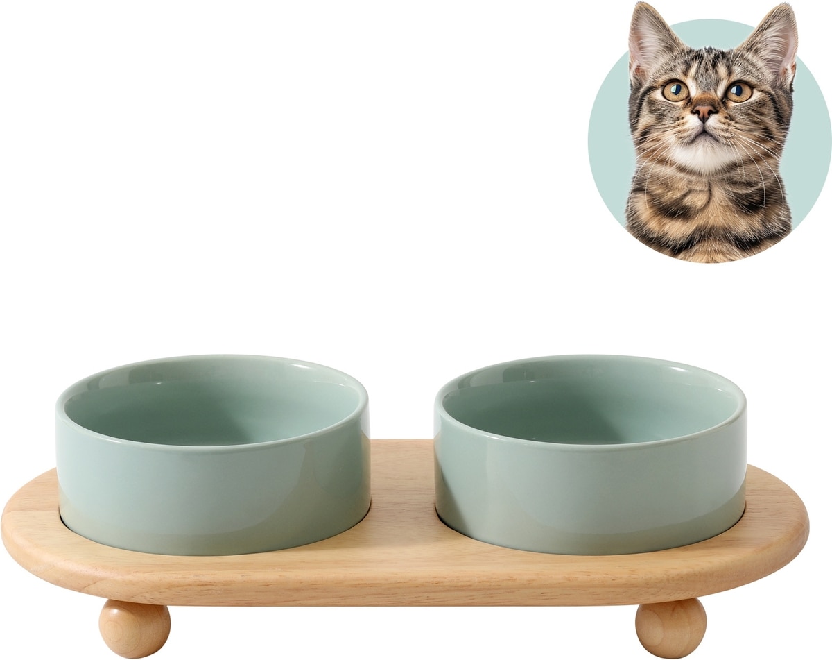 Havniva Ceramic Elevated Cat Bowl with Stand, 5.1-in, 2 count, Light Green