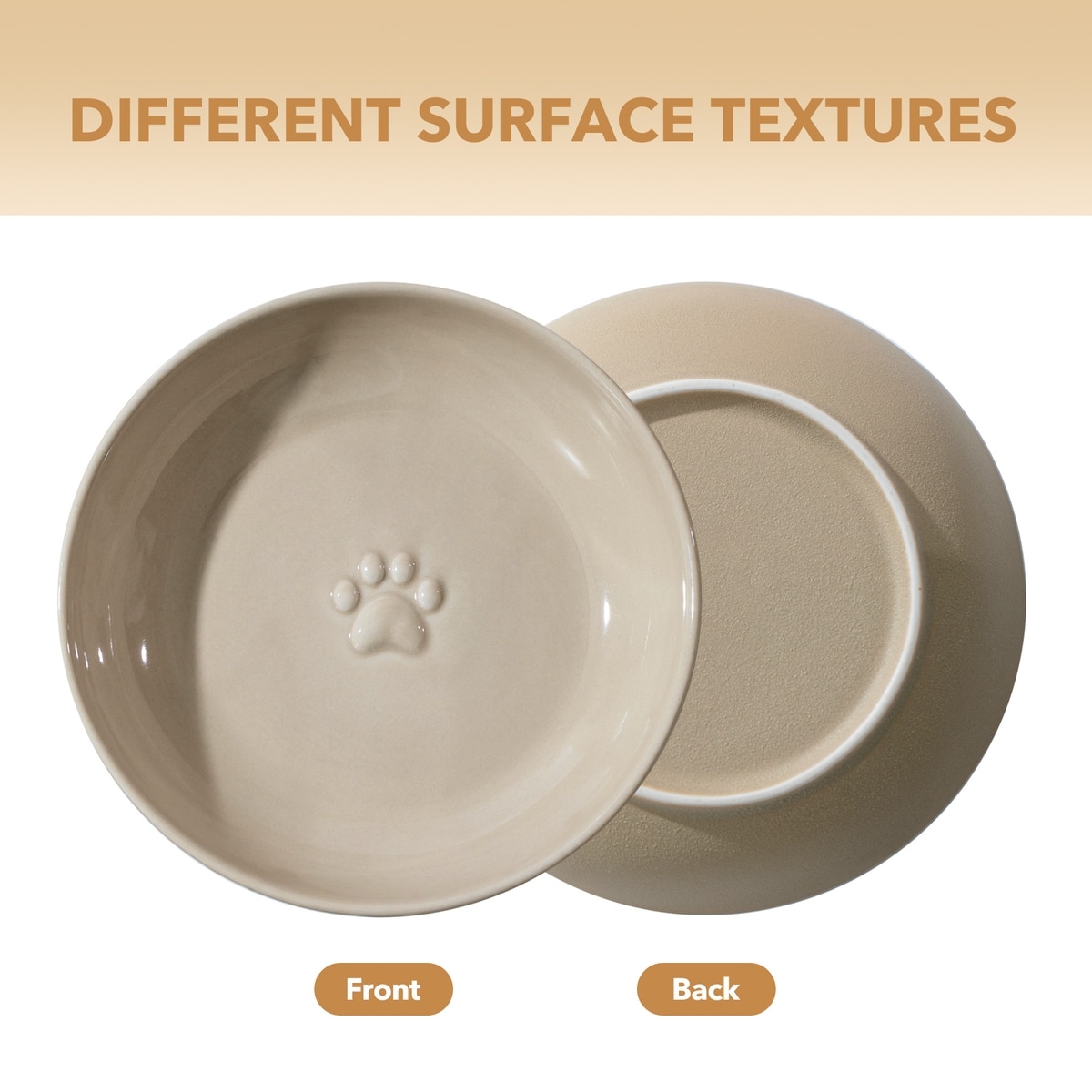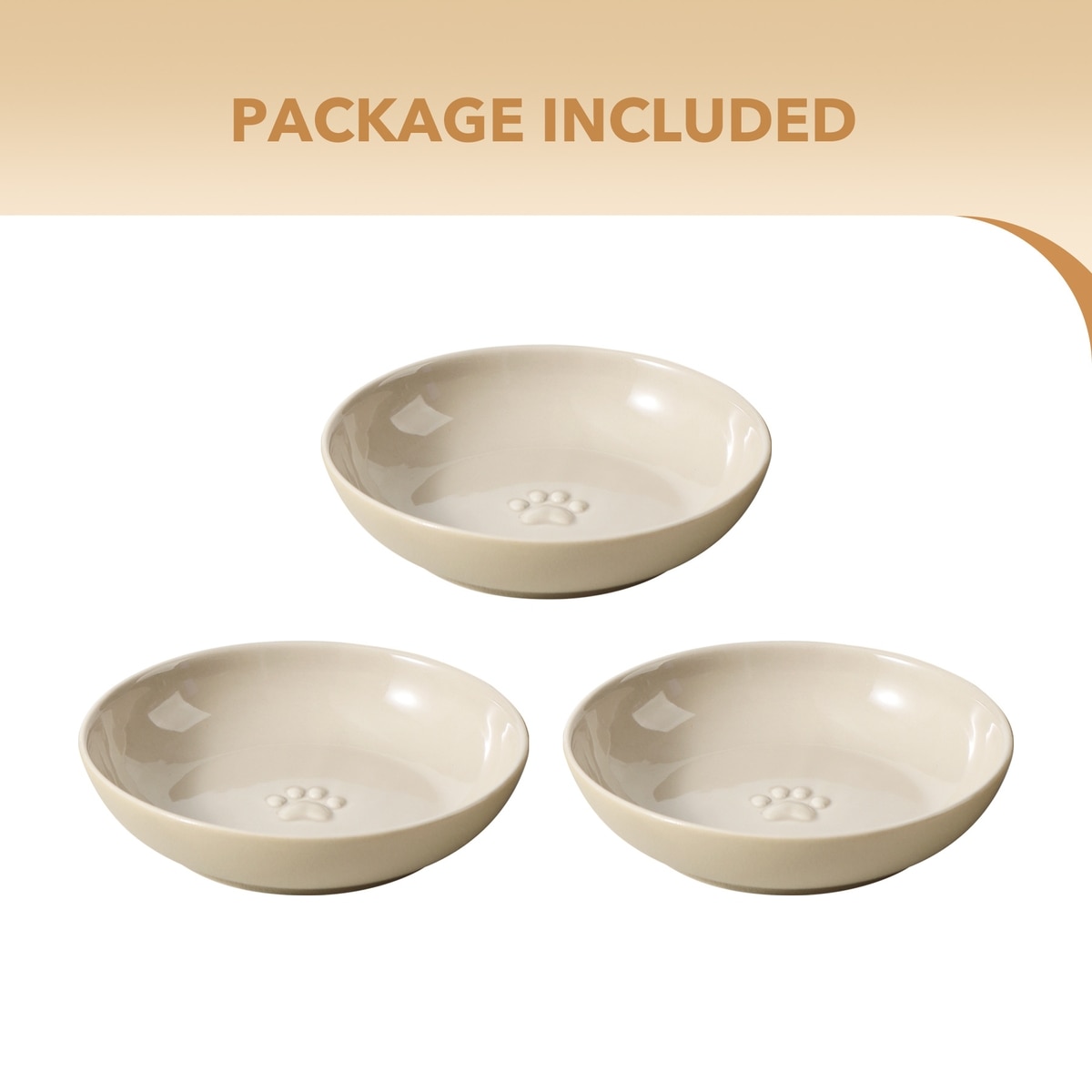 Havniva Ceramic Non-Skid Cat Bowl, 5.6-in, 3 count, Vintage Latte