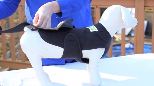 EXTREMELY impressed with this find. I used this on my greyhound following surgery, instead of using a cone or t-shirt. It is incredibly adaptable as you can velcro to any part of the material. It did not stress him out, easy to check his incision, easy to readjust when needed.