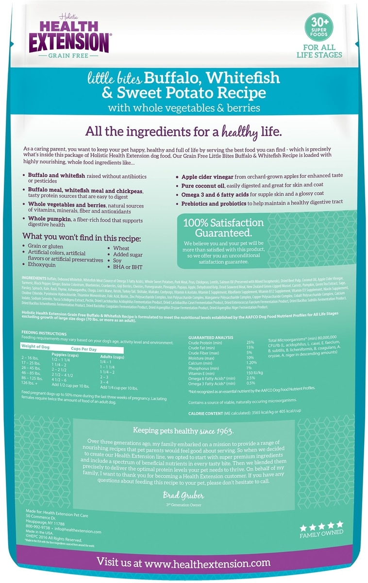 - Health Extension Little Bites Grain-Free Venison & Sweet Potato Recipe Dry Dog Food, 3.5-lb bag$28.98 Chewy Price$27.53 Autoship PricePromo, New Customers Only: Spend $49+, Get $20 eGift Card