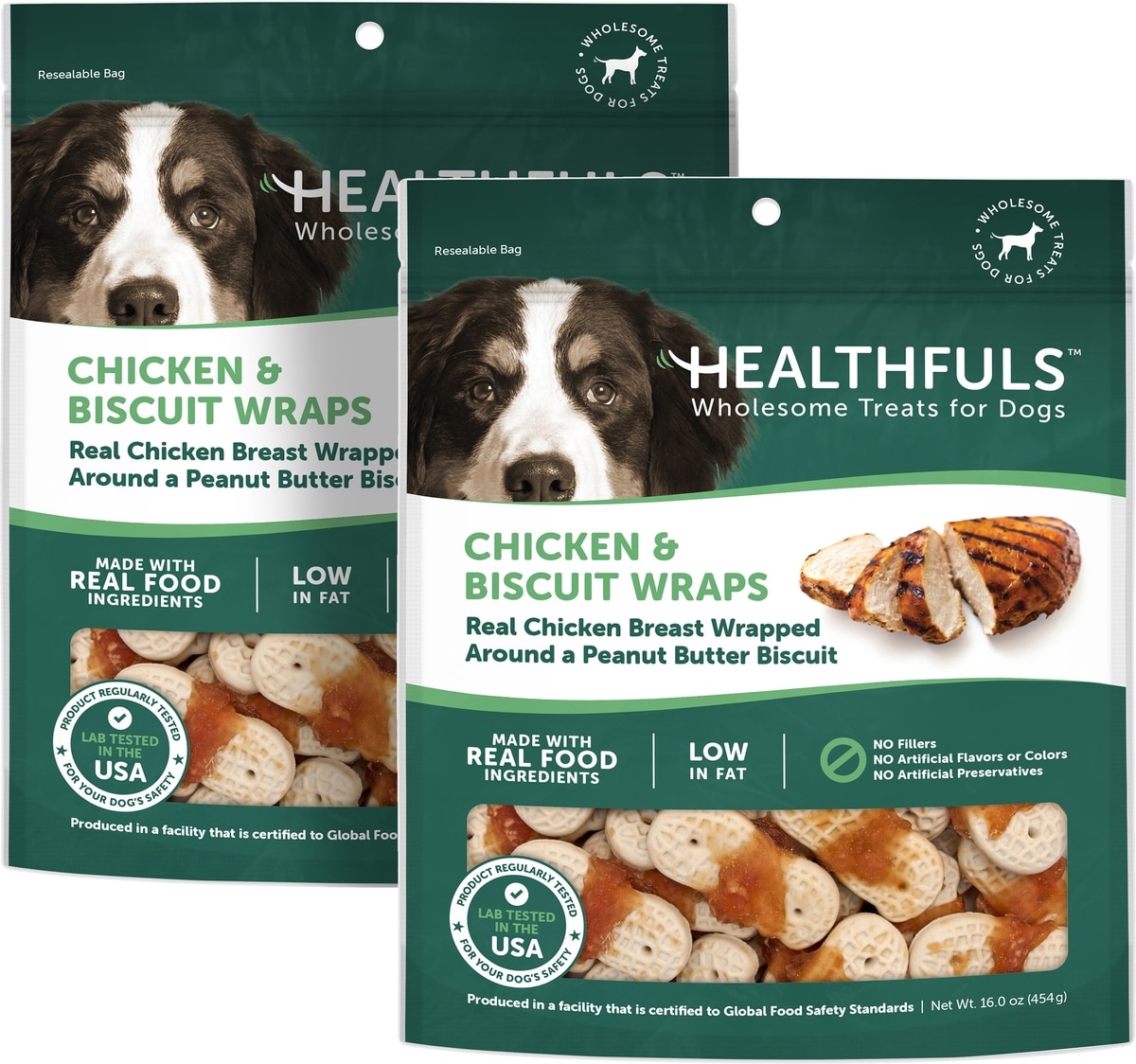 Healthfuls Chicken & Peanut Butter Biscuit Wraps Dog Treats, 16-oz bag, bundle of 2