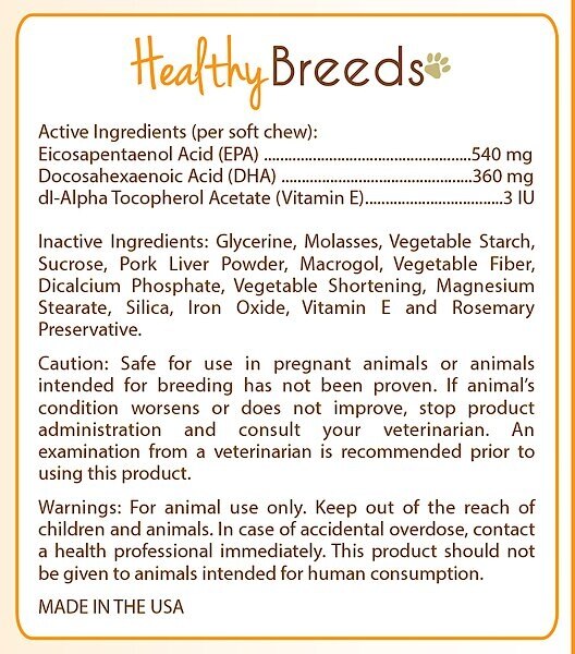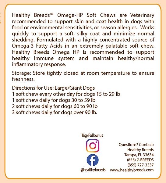 Healthy Breeds Omega HP Fatty Acid Skin & Coat Support Soft Chews Dog Supplement, 90 count