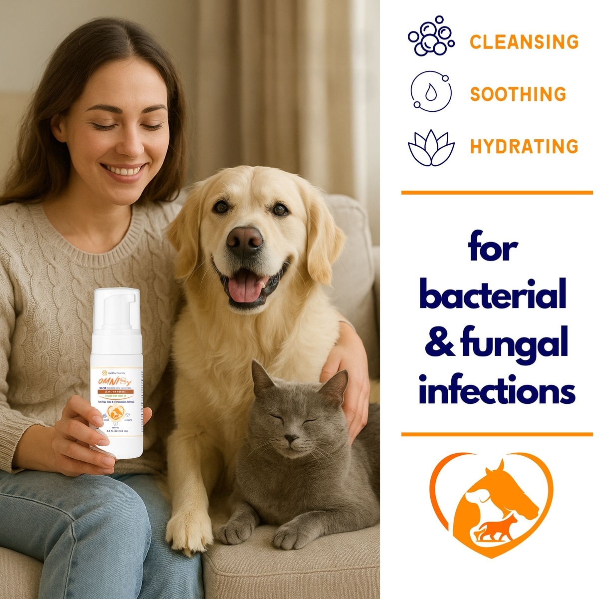 Healthy Paw Life OMNISx Leave-On Mousse Sulfur based Veterinary-Strength Liquid Formula for Dogs & Cats, 100-mL bottle