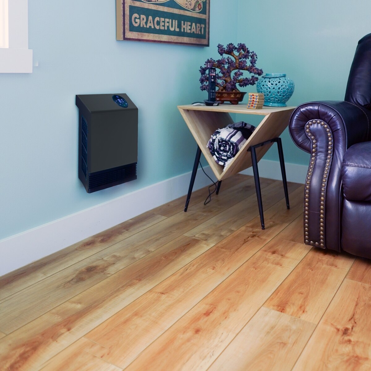 • Can be easily installed on a wall or converted to a portable floor heater.