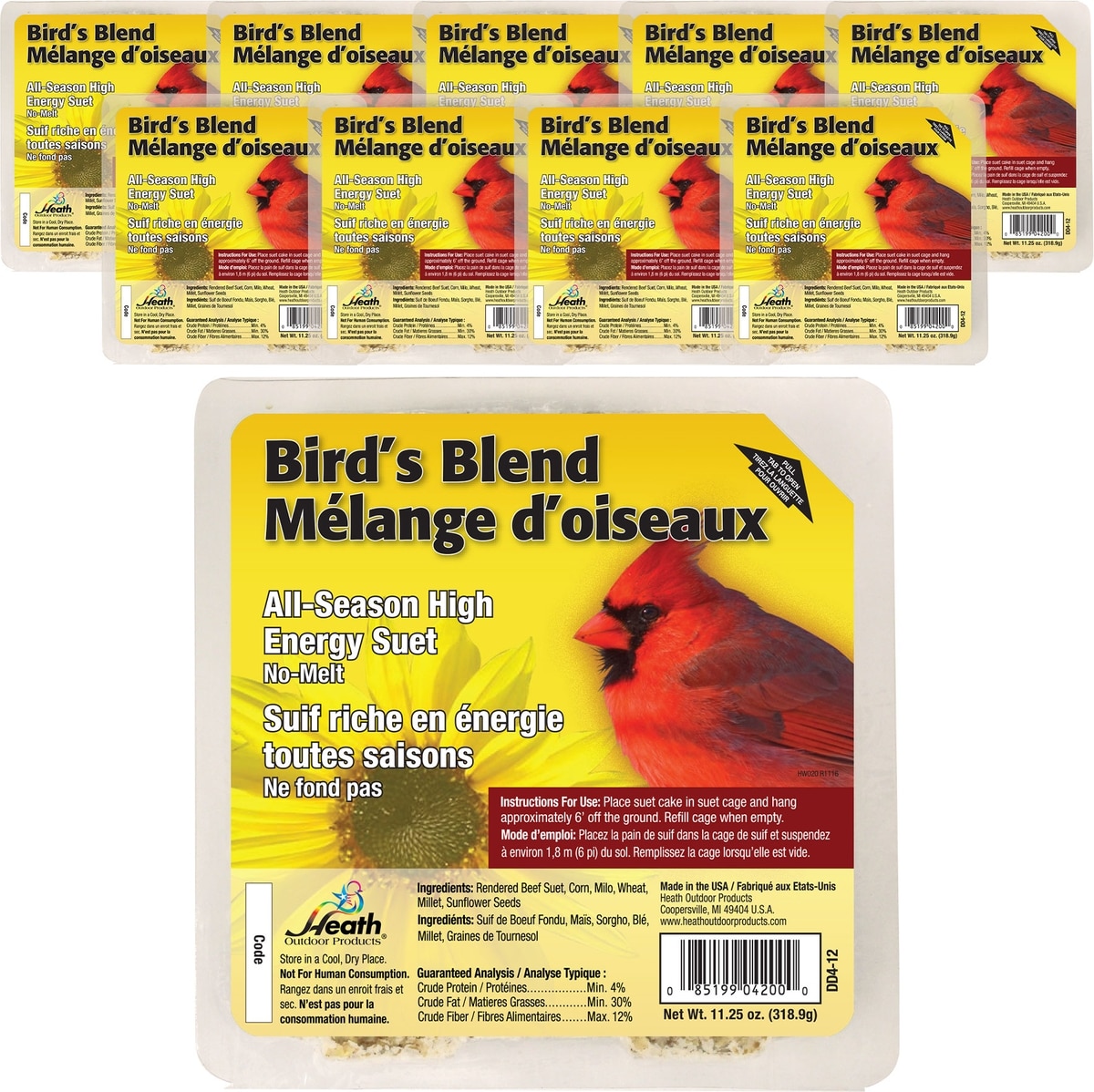 Heath Outdoor Products All Season High Energy Suet Cake Songbird Food, 11.25-oz tray, case of 10