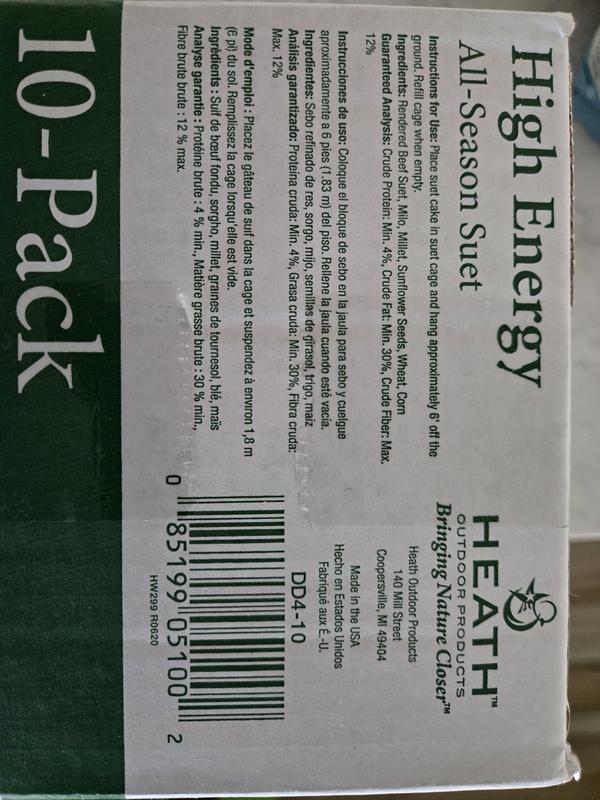 Living in Florida, we get tons of migratory birds passing through, so I’m always looking for something that can keep up with the constant traffic at my feeders. These Heath Outdoor Products All-Season High-Energy Suet Cakes have been perfect. Each cake is individually wrapped, which makes refilling super quick and clean—just open and drop it into the feeder. The high-energy blend is a huge hit with the birds. I’ve seen everything from cardinals and chickadees to goldfinches and other colorful songbirds that only stop by during migration. It’s been such a treat watching new species show up for a snack. The easy-open packaging really does make it a hands-free experience, and I like that storing them in a cool, dry place keeps them fresh even in Florida’s humidity. Between the convenience, the quality, and how many birds it attracts, this suet has definitely become a staple in my backyard setup. If you live in a high-traffic bird area—or just want to bring more color and activity to your yard—these suet cakes are absolutely worth it!