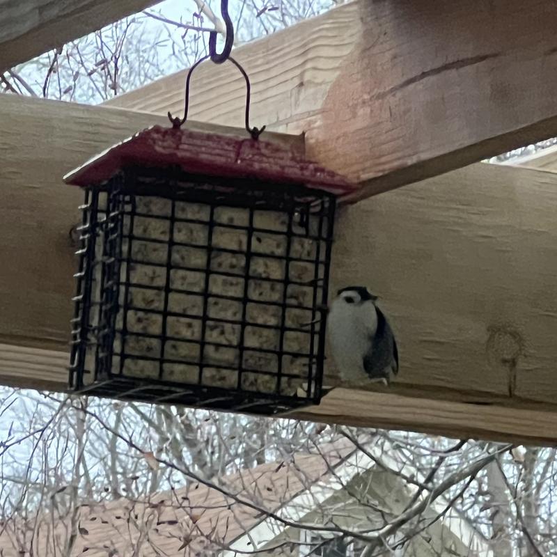 I’ve had this hanging outside my house for a little while now. So far the birds have been enjoying it. The nuthatches and woodpeckers in particular make sure to