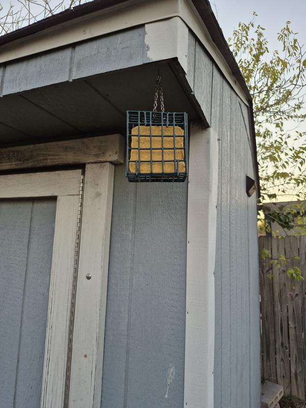 I don’t usually write reviews, but this feeder deserves one. Right out of the box it feels solid and well-made — not that flimsy, thin-metal junk you often see. The green finish looks clean in the yard and hasn’t faded or scratched yet. Installation was straightforward, and it holds any standard 12-oz suet cake without a fight. More importantly, birds are using it regularly. It does exactly what it’s supposed to: stays up, keeps the suet in place, and gives the birds a stable spot to feed. No fancy bells or whistles here. Just a sturdy, no-nonsense feeder that clearly will last and does its job day in, day out.