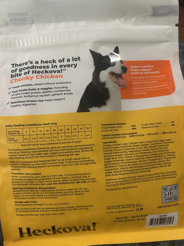 Heckova! is the premium dog food your heck of a dog deserves. Specially formulated by canine nutrition experts, it offers the wholesome nutrition and rich taste of raw dog food along with the safety and convenience of freeze-dried.
