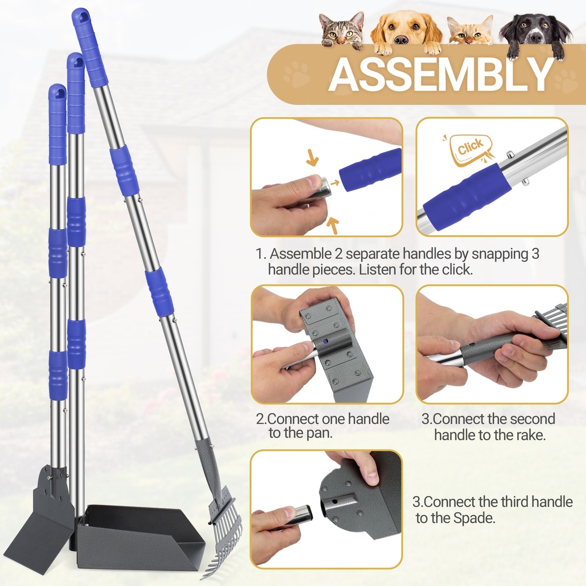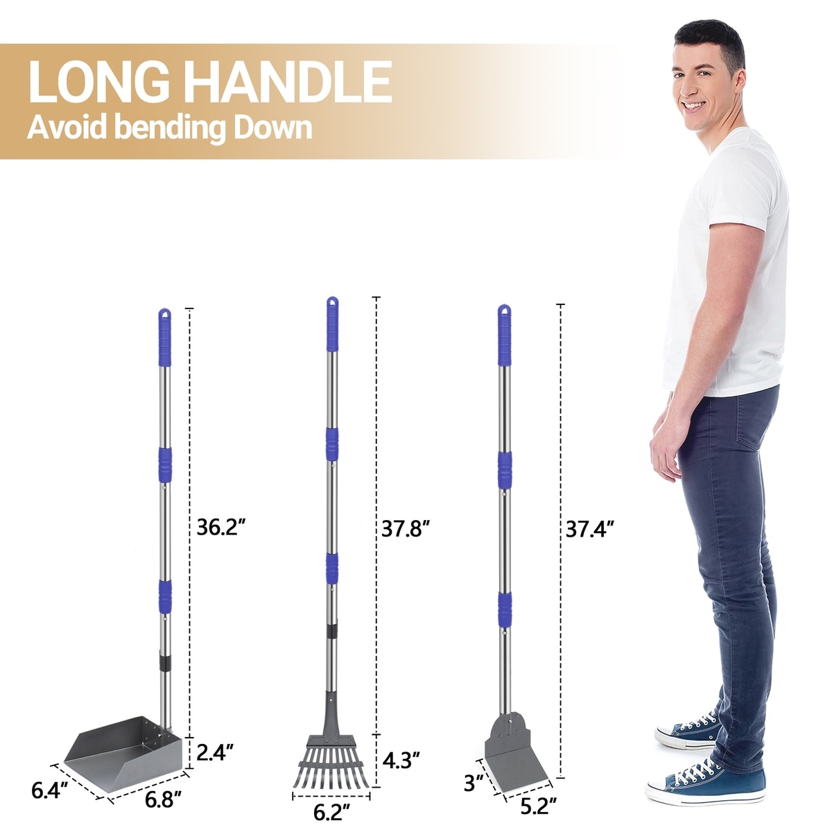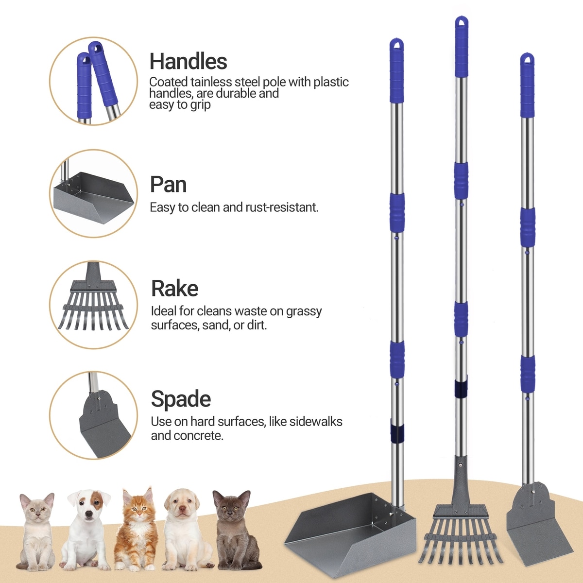 Heeyoo Stainless Steel Spade Poop Scooper Set, Silver & Blue