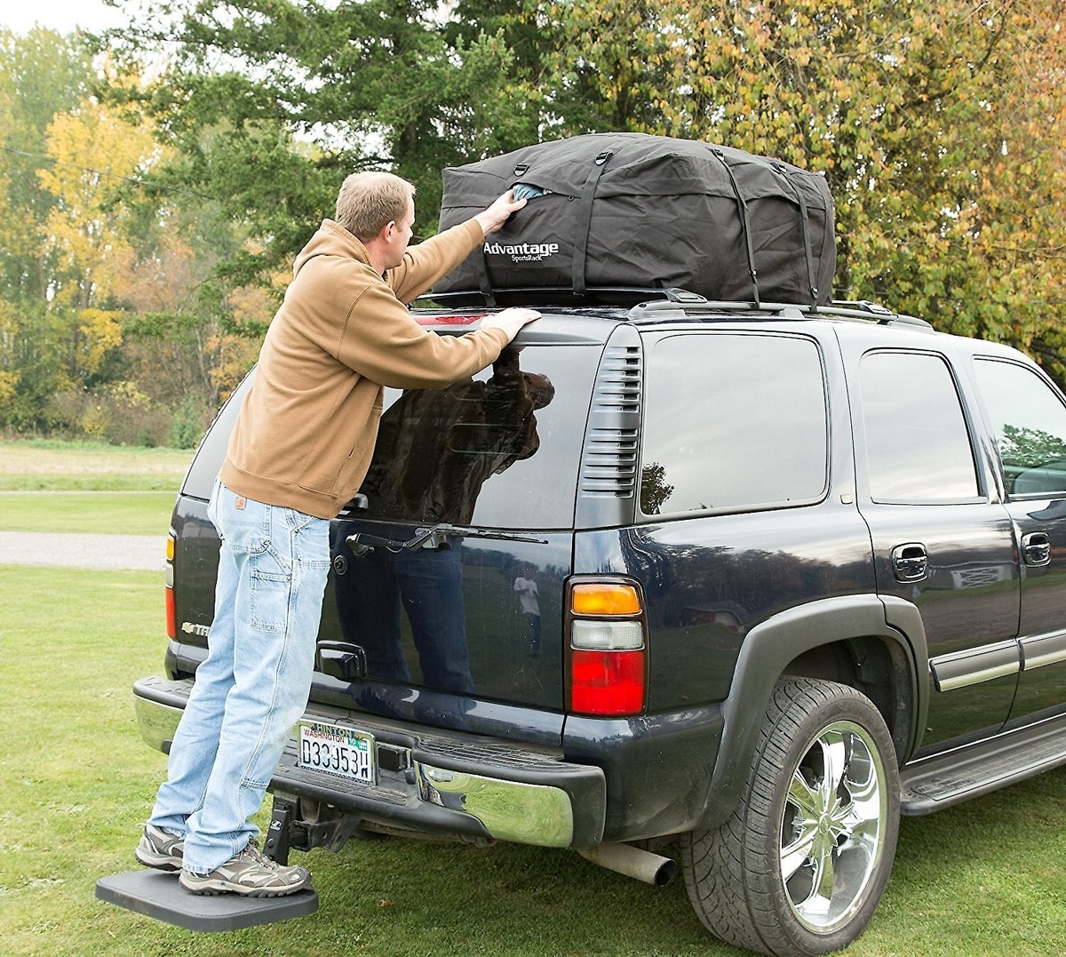 The Twistep for will hold up to 400 pounds on a Class III Hitch – So don’t be afraid to use this step to reach your rooftop cargo.