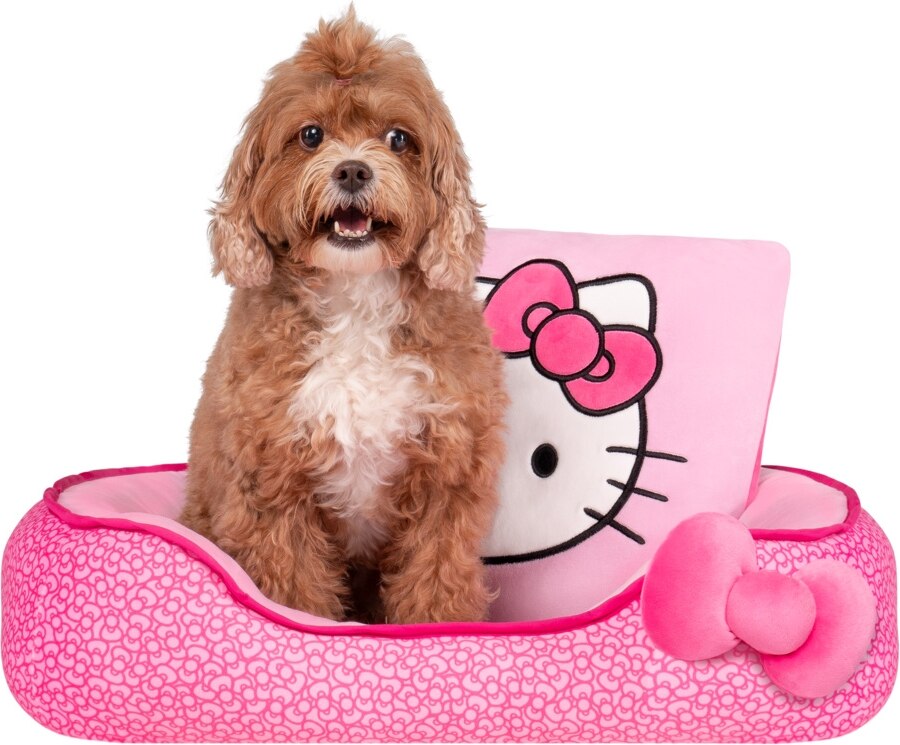 - This bolstered pet bed features a cute design of Hello Kitty for your furry friend to nap in style.