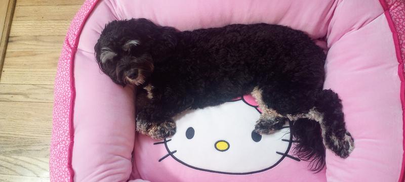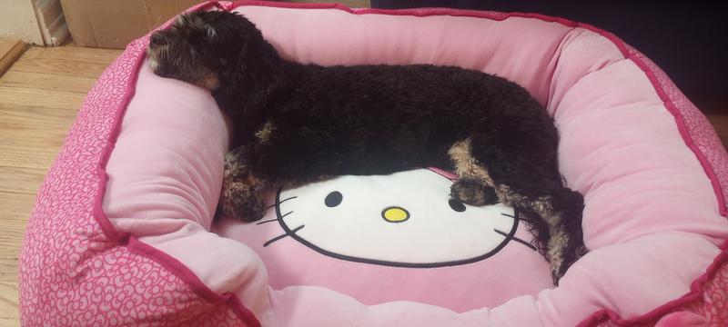 If my dog loves it I love it too! My dog is a such a Girly girl and loves this bed so much! she already had this bed but it was time for a new one so i got her a different bed and she didnt like it at ALL! she wanted the hello kitty bed. i ended up rebuying it for her and she is in love all over again. Only thing i dont like, its really hard to wash. the padding is removal for just one piece of the bed (where the HK head is at) not all around. Also the zipper is kind of awkward. You have to bend the padding/cardboarder inside to allow it to pull out the padding sleeve.