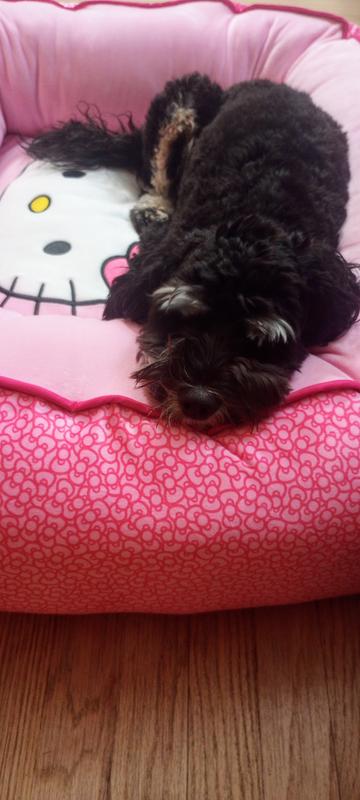 Okay listen up hoomans I love my new Hello Kitty bed It is so soft and pink and makes me feel like the princess I truly am The cushion is fluffy the sides are perfect