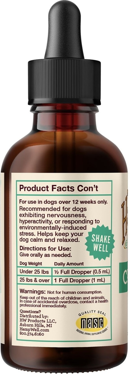 Hemp Well Calm Dog Oil Anxiety Relief Liquid Dog Supplement, 2-fl oz bottle