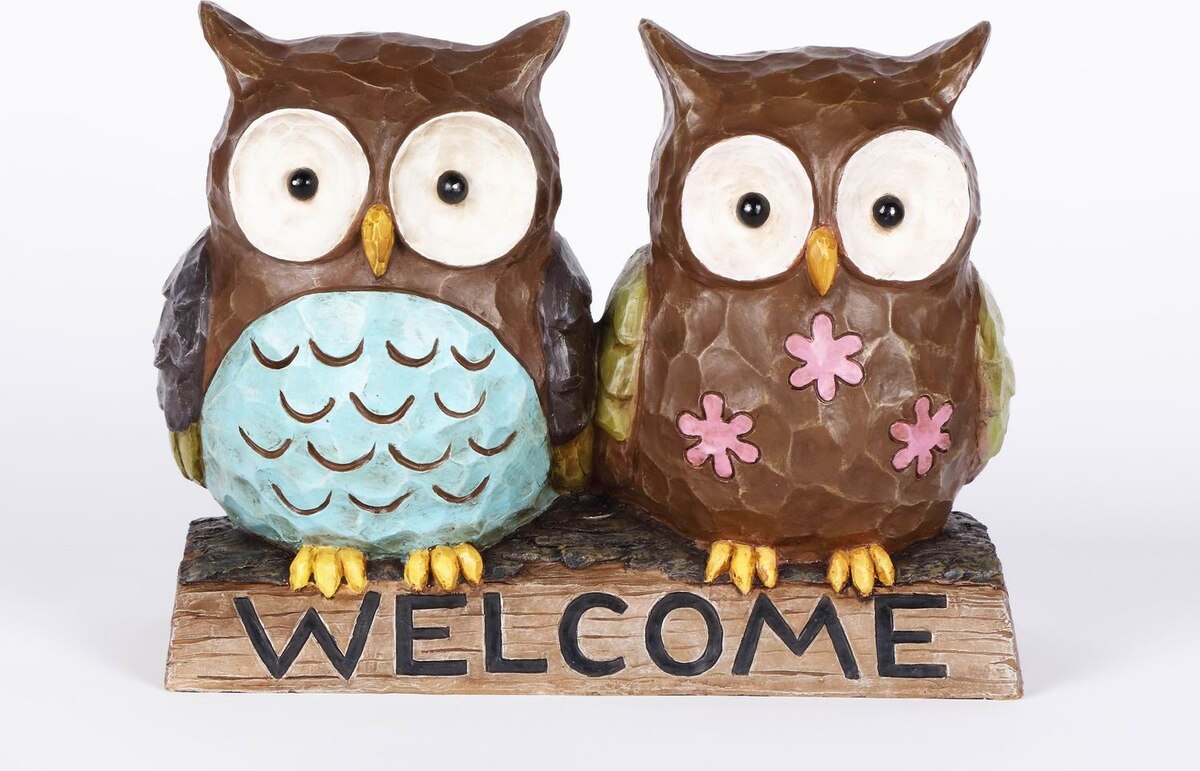 Hi-Line Gift 10.38-in Owl Couple with Welcome Sign Outdoor Decor