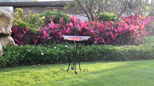 Hi-Line Gift Solar Butterfly with Chinese Herbaceous Peony Glass Bird Bath with Stand, Multicolor
