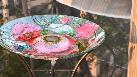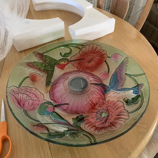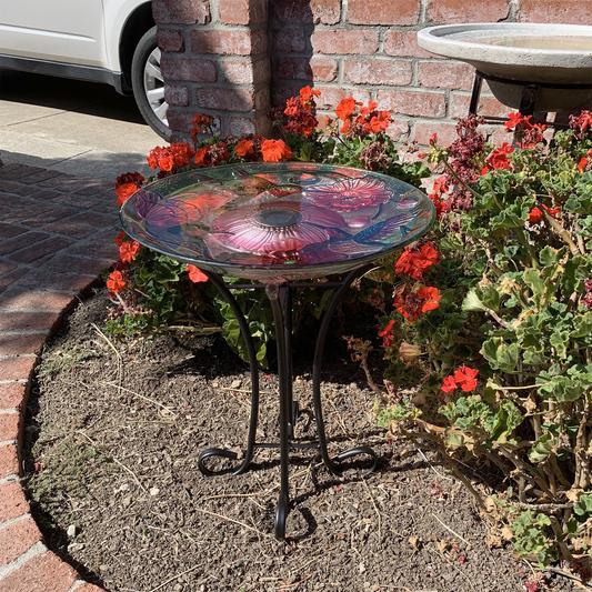Hi-Line Gift Solar Hummingbird with Corn Poppy Glass Bird Bath with Stand, Multicolor