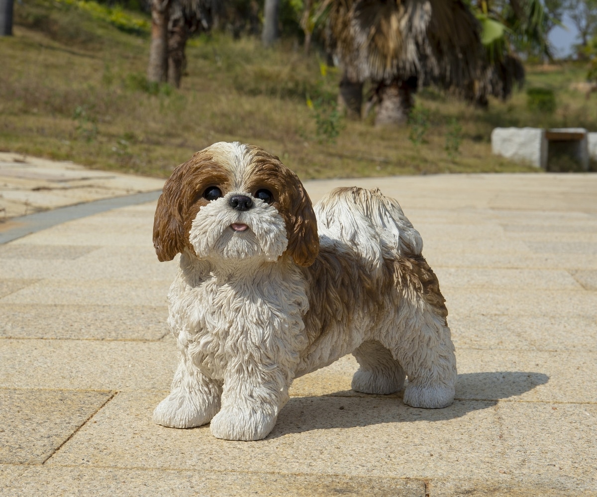 Hi-Line Gift Standing Shih Tzu Statue, Brown & White, 10.04-in
