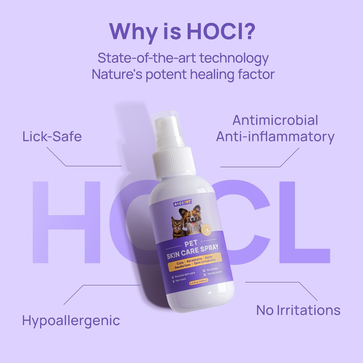 Hypochlorous acid is a gentle, effective choice for pets. It cleanses and soothes wounds, skin, eyes, and ears while fighting off bacteria. It's perfect for daily care and helps heal and protect your pet without causing irritation.