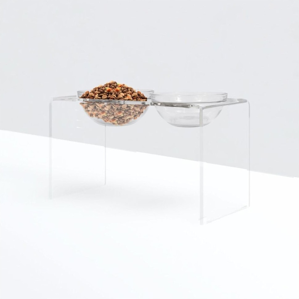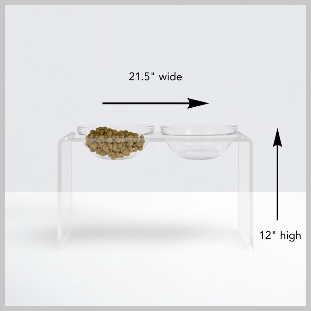Hiddin Clear Glass Double Dog Bowl, Tall