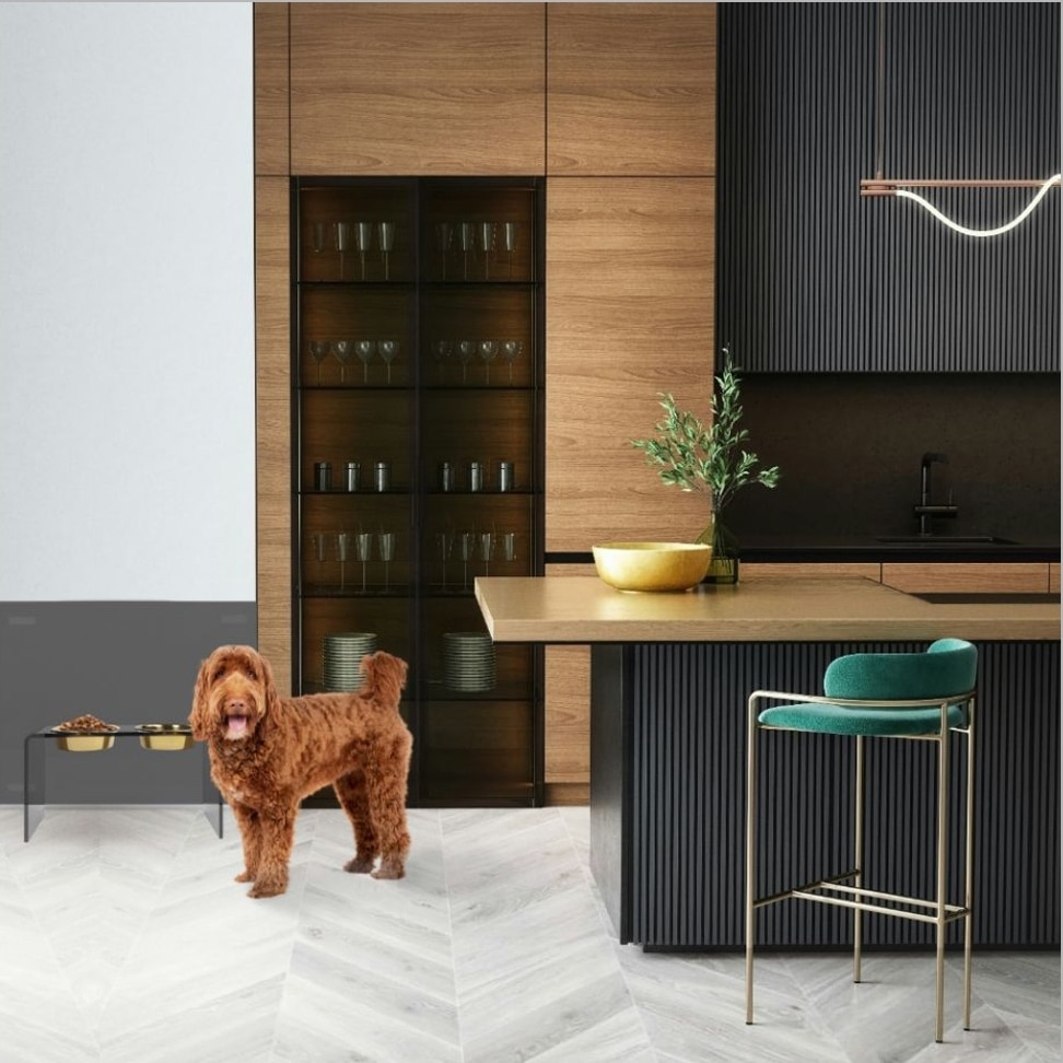 Hiddin Tall Smoke Grey Elevated Dog Bowl Feeder, Gold, 6.5-cup