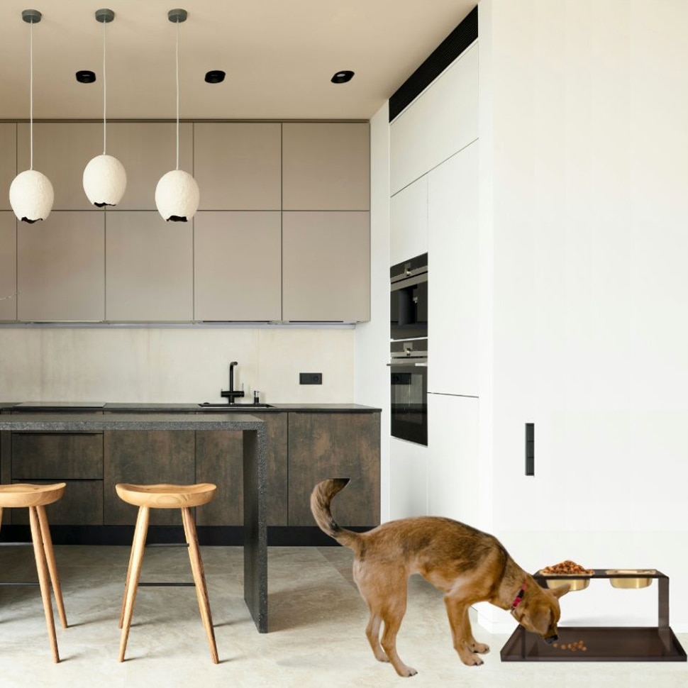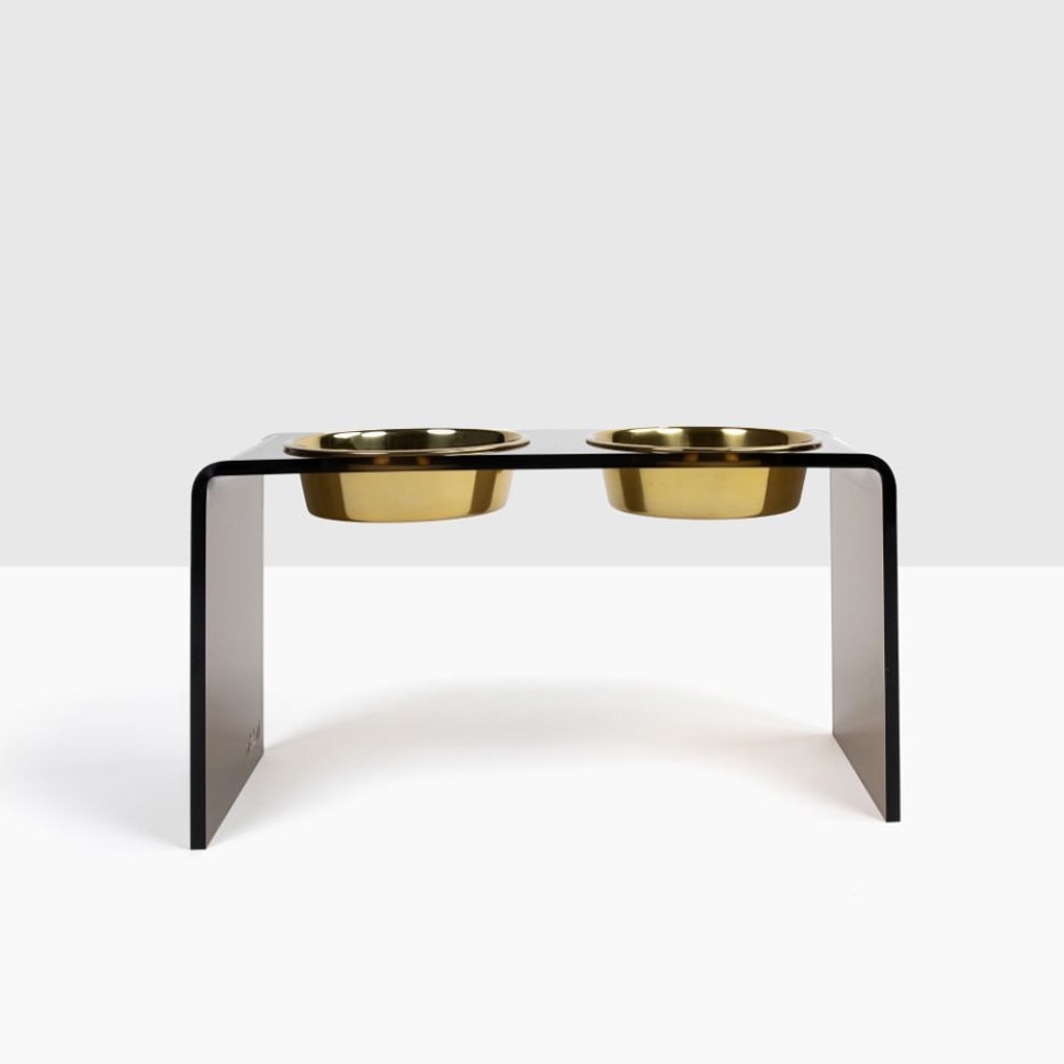 Hiddin Bronze Acrylic Double Elevated Dog & Cat Bowl, Gold, 6.5-cup