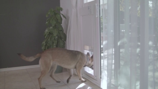 After your pet walks through the Power Pet Door, the translucent door panel slides vertically to safely close it with an airtight seal. A deadbolt automatically engages to secure the door and keep out wild animals, neighborhood pets and intruders.