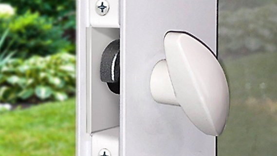 Your sliding glass door Power Pet insert comes with a heavy-duty latch to securely lock the door shut against your existing sliding glass door.