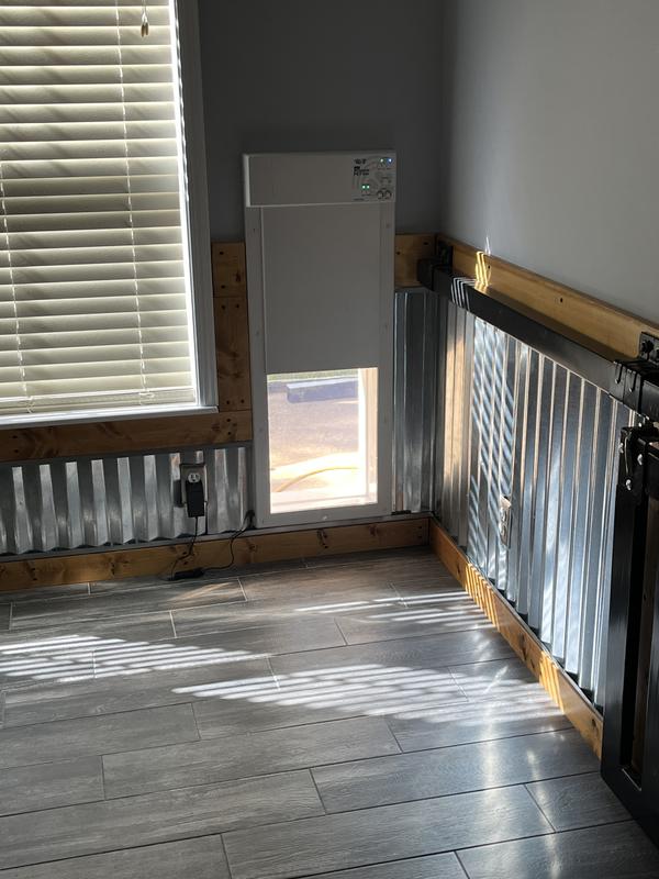 Works like a champ. Don’t have to get up in the morning to let the dog out was very hesitant about a dog door due to a lot of raccoons and skunks in our neighborhood now she just goes out on her own no problem. Don’t have to worry about animals getting in the house.