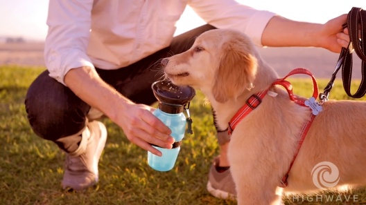 Highwave AutoDogMug Portable Dog Water Bottle & Bowl, Blue, 20-oz bottle