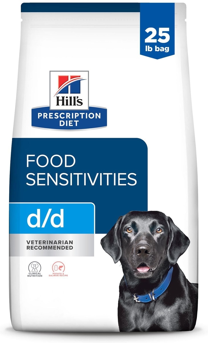 - Hill's Prescription Diet d/d Skin/Food Sensitivities Potato & Duck Recipe Dry Dog Food, 25-lb bag$141.99 Chewy Price$134.89 Autoship PricePromo, Buy select food, Get 20% off select supplements