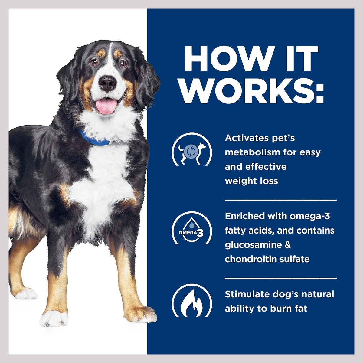 Hill's Prescription Diet Metabolic, Prescription Diet Metabolic + Mobility and Prescription Diet r/d have helped pets control their hunger and shed extra pounds with clinically proven results. Prescription Diet w/d helps dogs maintain a healthy weight. After two months of being fed the nutrition of Metabolic, 88% of dogs lost weight at home. Even a little extra weight can impact a dog's quality of life. Hill's Prescription Diet foods are made specifically to help pets achieve and maintain a healthy weight.