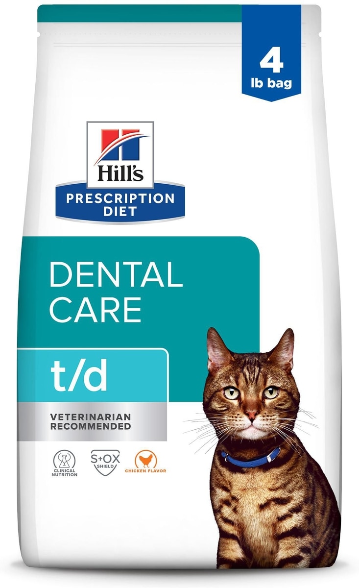 Hill's Prescription Diet t/d Dental Care Chicken Flavor Dry Cat Food, 4-lb bag