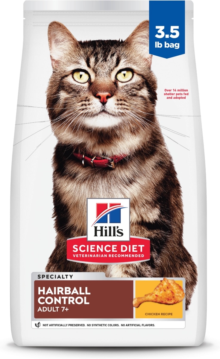 Hill's Science Diet Senior 7+ Hairball Control Chicken Recipe Dry Cat Food, 3.5-lb bag
