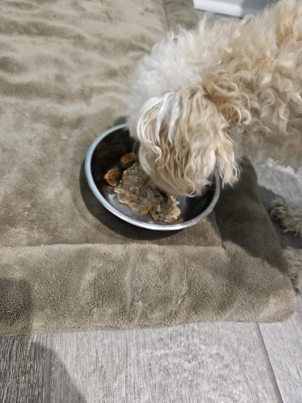 I have a very picky 9-year-old Yorkie mix. Trying to get her to eat is a challenge! And finding things that are easy on her sensitive tummy is also a challenge. This hit the mark! She seems to love it, it doesn't cause any growling tummies, and it's in a really convenient little pack that's easy to throw in my purse for last minute meals while we are out and about. Highly recommend!